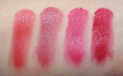 This past week I did a Chanel.com order and one of the samples was a card of 4 of the Rouge Allure Velvet Lipsticks - La Ravissante, La Raffinee, L'Exuberante, and La Fascinante. So, I exfoliated the lips like crazy and got to swatching. It actually wasn't as bad as I expected!